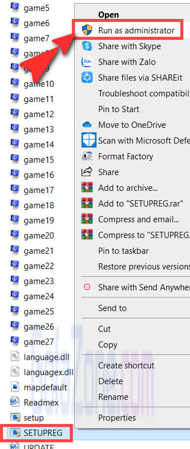 Mở file SETUPREG như hình bên dưới.