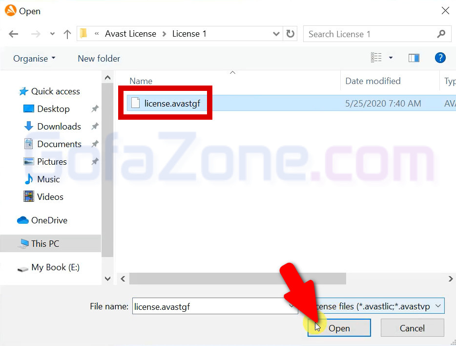 Rồi chọn đến một trong 2 file license mà bạn đã giải nén ra trước đó. Ở đây mình chọn License 1.