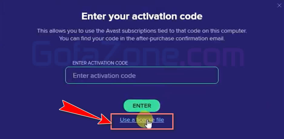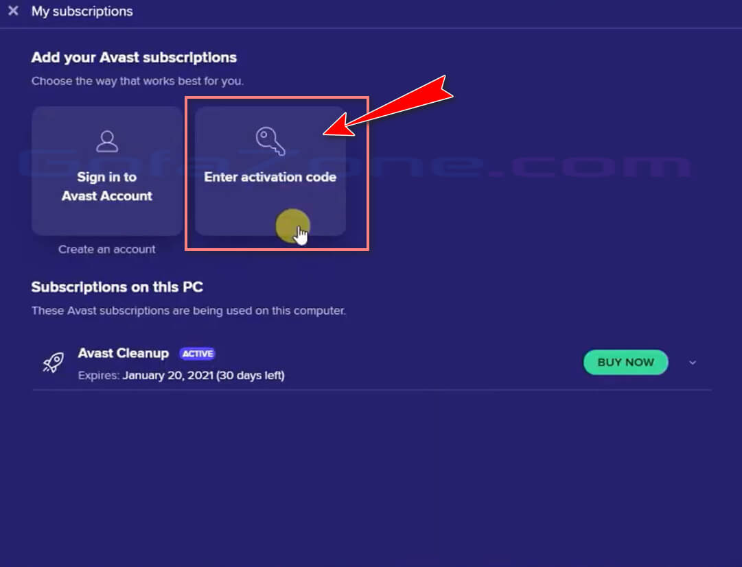 Chọn tùy chọn Enter activation code.