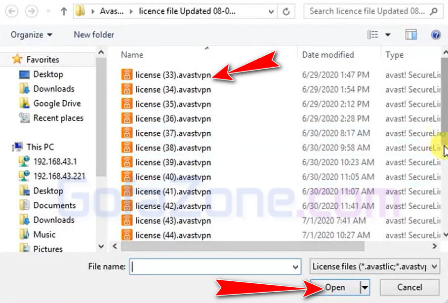 Chọn đến thư mục mà bạn đã tải về, vào thư mục chứa file license và chọn một file trong số các file này. Nếu không thành công thì chọn file khác nhé. Ví dụ bên dưới là mình chọn file số 33.