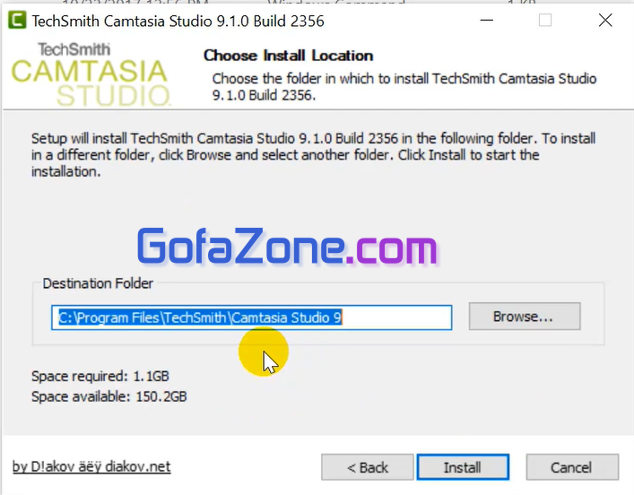 Tại bước này, bạn có thể thay đổi đường dẫn cài đặt phần mềm Camtasia Studio hoặc để như mặc định. Bấm Install để bắt đầu cài đặt.