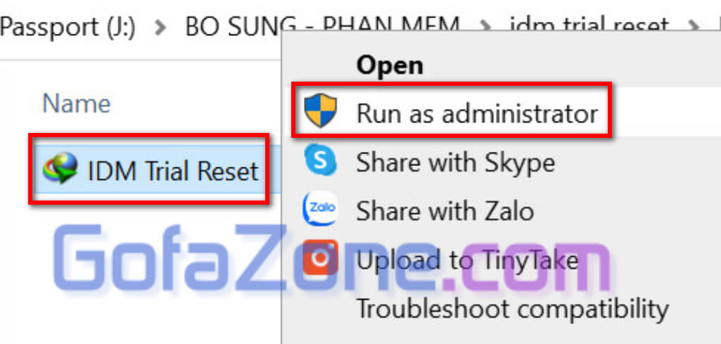 Mở file IDM Trial Reset với quyền Run as admin.