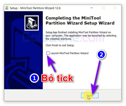 Bỏ tick ô Launch… và click Finish