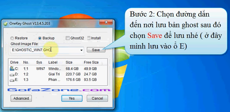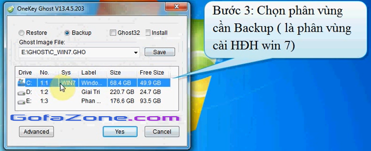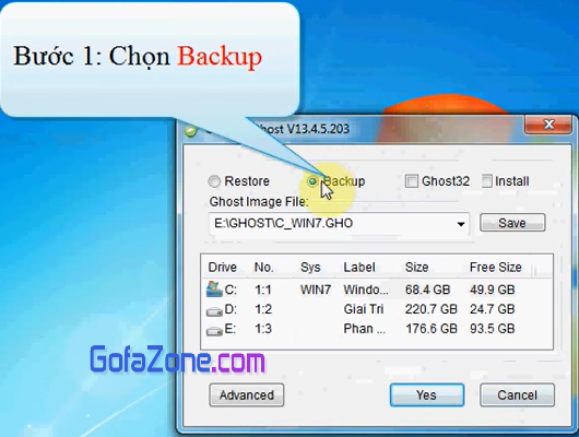 Tiếp đến là chọn phân vùng Backup, thông thường là ổ đĩa C.