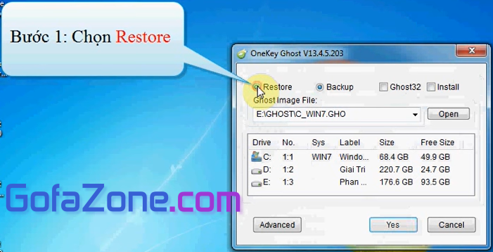 Mở phần mềm OneKey Ghost và nhập chọn Restore.