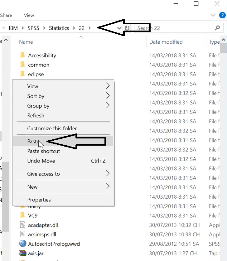 Paste vào thư mục cài đặt của phần mềm SPSS 22.