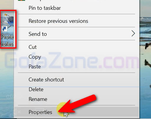 Nhấp chuột phải vào icon màn hình Proteus trên màn hình Desktop, chọn Properties.