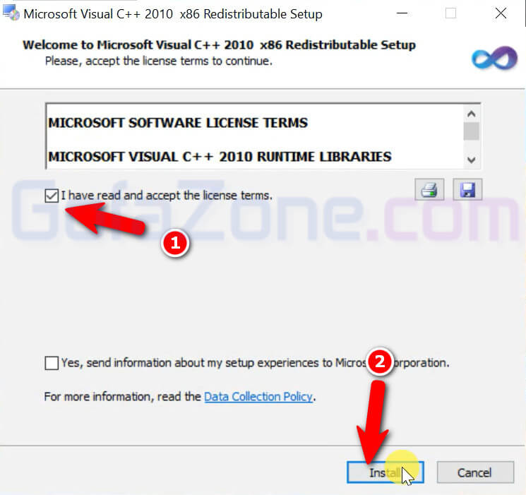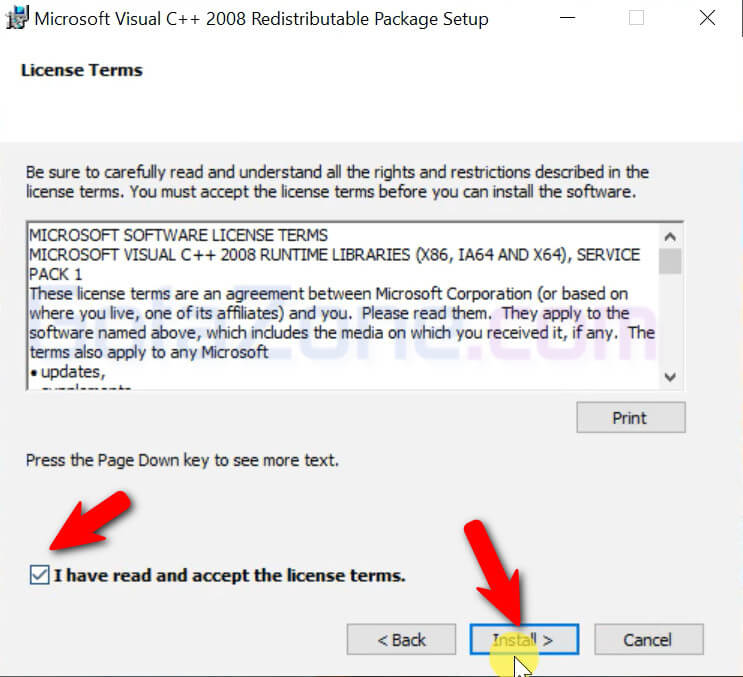 Tích chọn vào ô ở vị trí số 1 rồi bấm Install.