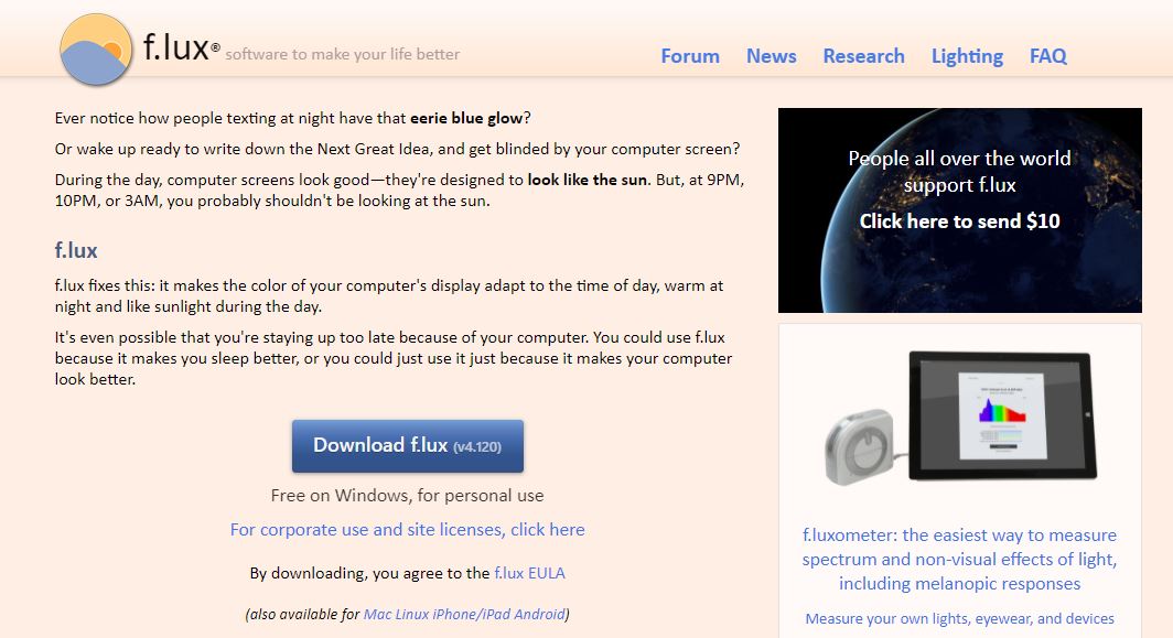 Bước 1: Hãy tải và cài đặt phần mềm f.lux tại đây.