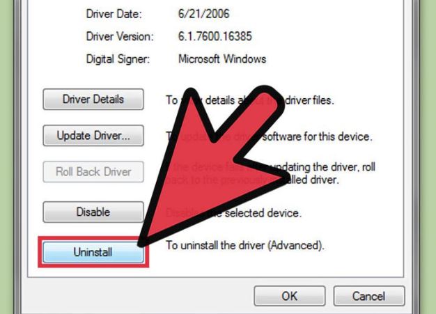 Vào tab Driver > Uninstall để gỡ bỏ driver (lưu ý: hãy nhớ chọn vào Delete the driver software for this device) > click OK là xong.
