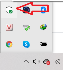 Bấm vào mũi tên nhỏ bên góc thanh Taskbar và nhấp vào biểu tượng hình chiếc khiên.