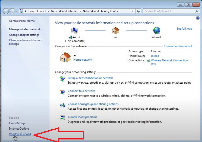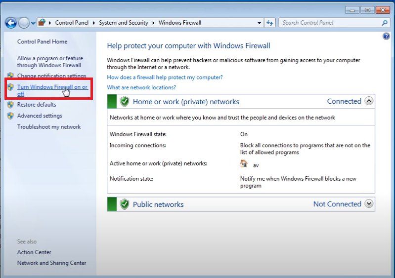 Chọn Turn Windows Firewall on or off.