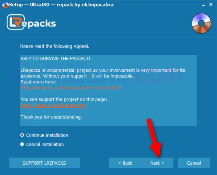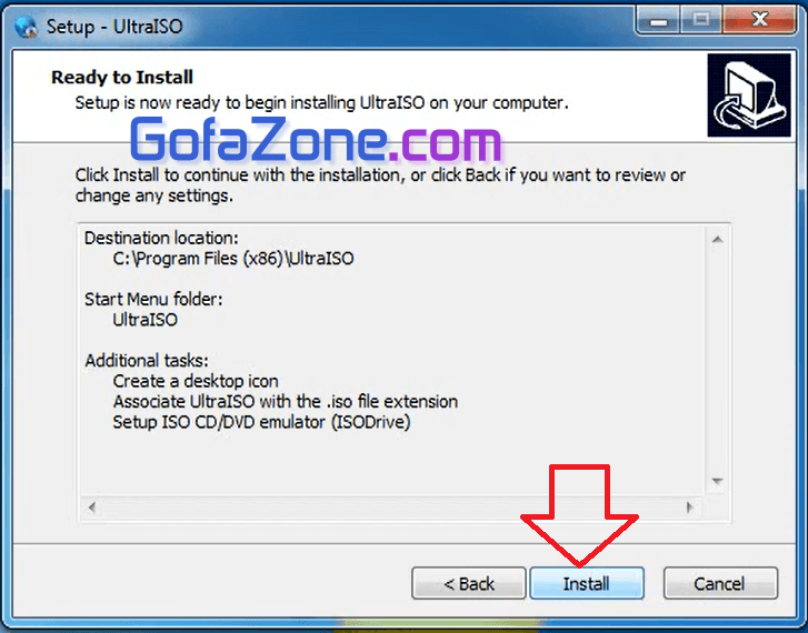 Bấm nút Install và đợi chút cho phần mềm UltraISO cài đặt.