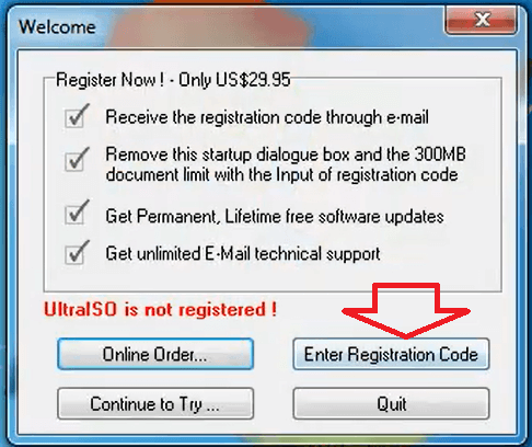 Một hộp thoại yêu cầu đăng ký sẽ xuất hiện. Bạn hãy nhấp vào nút Enter Registration Code.